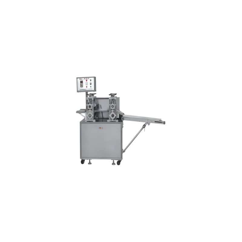 This machine is an essential production equipment for plate-shaped chewing gum and xylitol chewing gum. The sugar sheets coming out of the extruder are rolled and shaped by 6 pairs of shaping rollers.