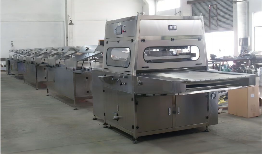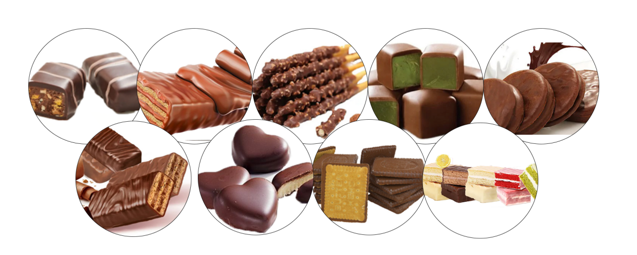 This series of chocolate enrobing machines are specialized equipment for producing colorful chocolate products. It can pour chocolate on the surface of pastries, cookies, wafers, candies, and other products, forming a variety of chocolate products with unique flavors.