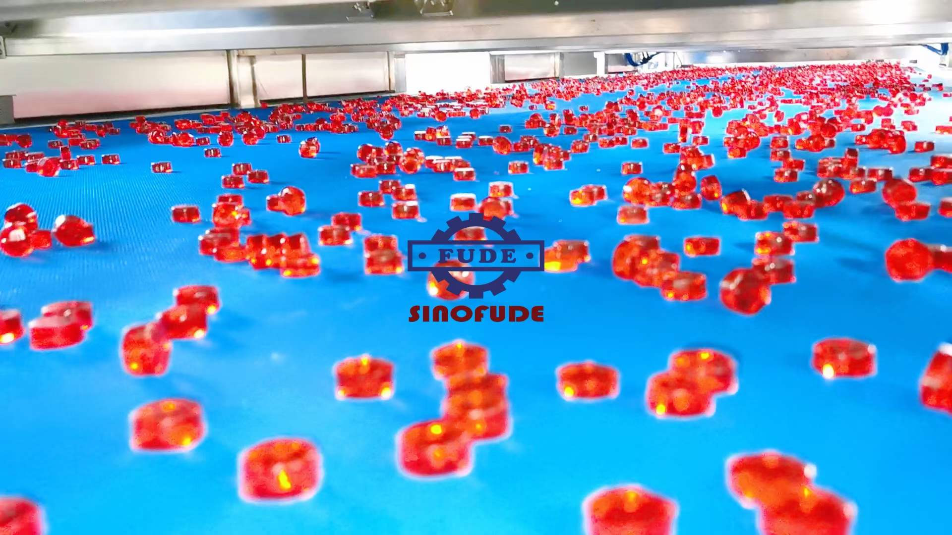 Gummy sirèt machin gen yon jakèt Hopper - sistèm piki lwil oliv - sistèm bòdi - tinèl refwadisman - aparèy demoulding - senti CONVEYOR.