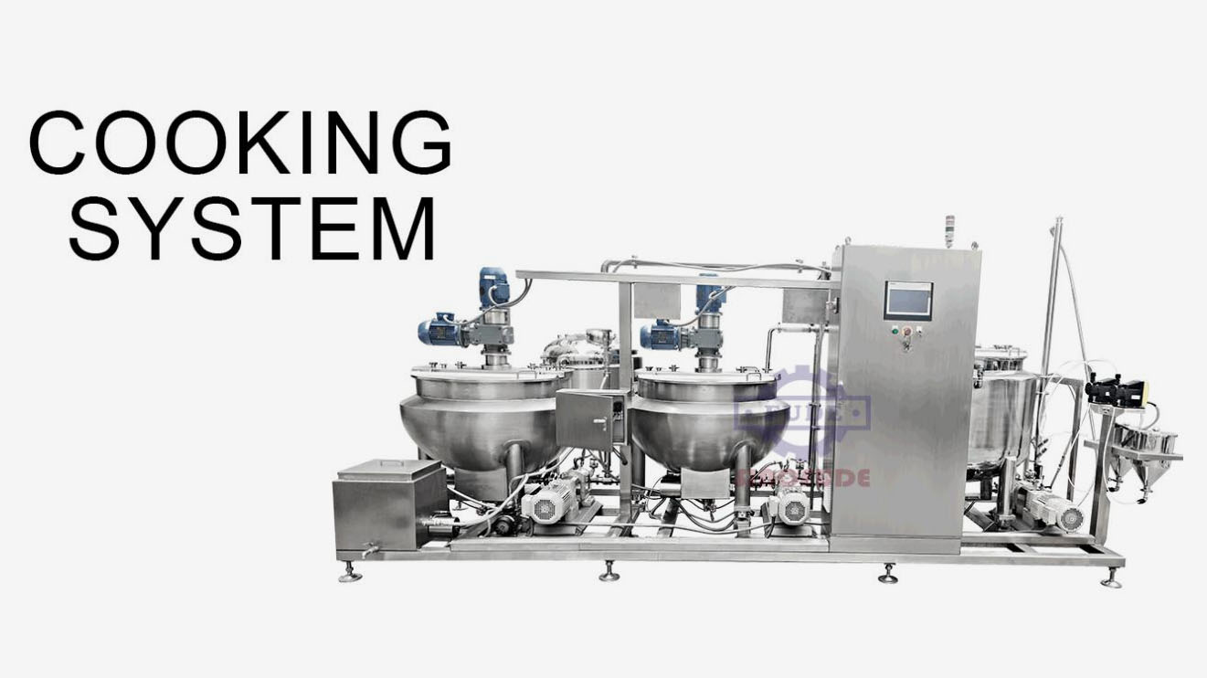 Шикізатты өңдеу жүйесі негізінен қантты қайнату мен сиропты сақтауды қамтиды. Пісірілген шәрбат оқшауланған құбыр және тісті сорғы арқылы сақтау бөшкесіне тасымалданады, содан кейін сақтау бөшкесіндегі сироп оқшауланған құбыр және роторлы сорғы арқылы құю бункеріне тасымалданады.