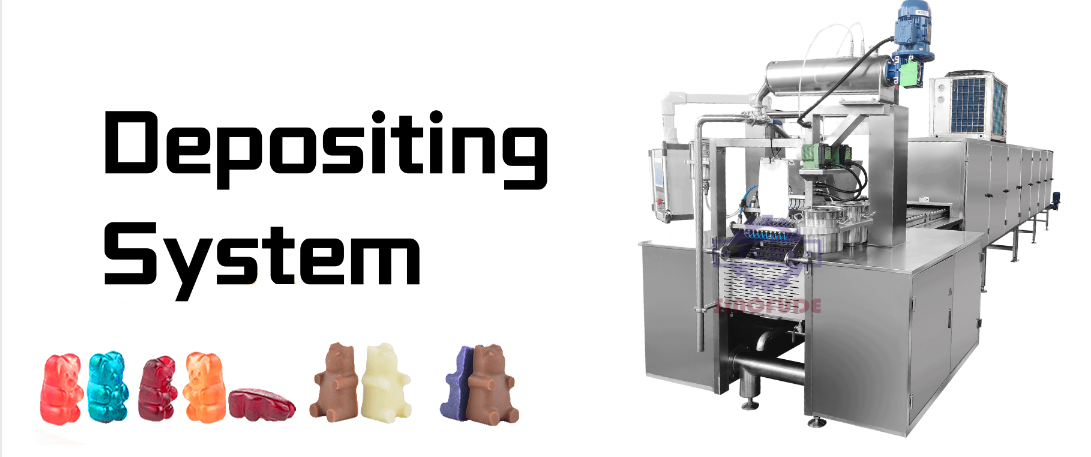 បន្ទាប់មកមកប្រព័ន្ធដាក់ប្រាក់។ ផ្នែកនេះអាចគ្រប់គ្រងទម្ងន់ និងទំហំនៃស្ករគ្រាប់ខ្លាឃ្មុំទន់ៗបានយ៉ាងជាក់លាក់។ ហើយនៅខាងក្រោម hopper មានខ្សែក្រវ៉ាត់ conveyor ជាមួយនឹងផ្សិតដែលបានដំឡើង។ ទំហំ និងរូបរាងរបស់ផ្សិតកំណត់រូបរាងនៃស្ករគ្រាប់ទន់។ ជាឧទាហរណ៍ អ្នកចូលចិត្តស្ករគ្រាប់ខ្លាឃ្មុំ ដូច្នេះផ្សិតត្រូវតែបង្កើតជារាងខ្លាឃ្មុំ។ ដូចគ្នានេះដែរ បើចង់ធ្វើក្រពើ ពស់ ដាយណូស័រ និងរាងផ្សេងៗទៀត គឺត្រូវផ្លាស់ប្តូរផ្សិតតែម្តង ។