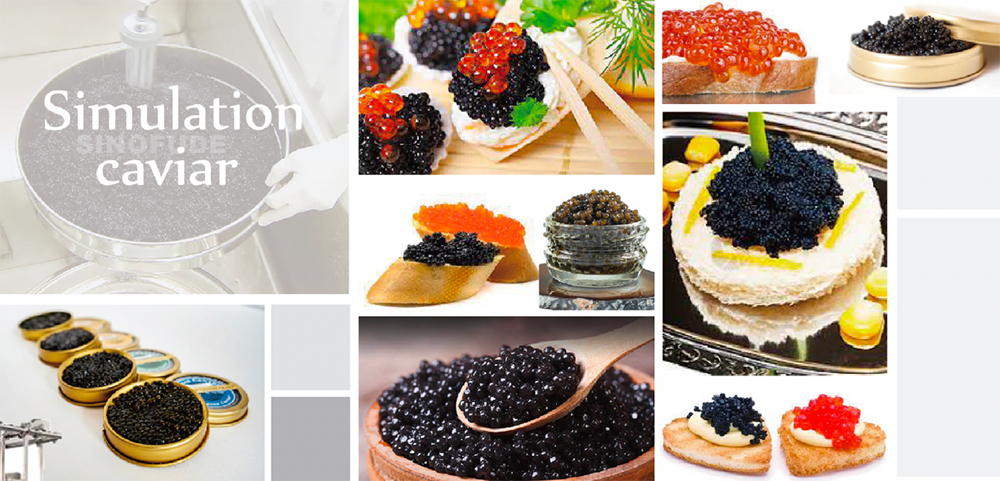 Caviar គឺប្រណិត និងឆ្ងាញ់។ លើសពីនេះទៀត caviar ក្លែងធ្វើពី POPPING BOBA PRODUCTION LINE ពោលគឺ caviar សិប្បនិម្មិតក៏មានវាយនភាពផ្ទុះ ក៏ដូចជារសជាតិ និងពណ៌ជាច្រើនទៀត ដែលពោរពេញទៅដោយភាពច្នៃប្រឌិត និងការភ្ញាក់ផ្អើល។ នេះធ្លាប់ជា "មេចុងភៅជាព្រះ" របស់ជនជាតិអេស្ប៉ាញ Ferran Adrià Brilliant craftsma nship ។ មិនត្រឹមតែសម្រាប់ម្ហូបបស្ចិមប្រទេសប៉ុណ្ណោះទេ ថែមទាំងសម្រាប់អាហារចិន អាហារជប៉ុនជាដើម ដើម្បីបង្កើនរសជាតិ រូបរាង និងគុណភាព ព្រមទាំងបង្កើតមុខម្ហូបពិសេសៗ។