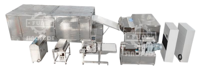 Shanghai Fude Machinery Manufacturing Co., Ltd. specializes in the innovation, research, and manufacturing of various candy production equipment. We provide globally tailored, high-quality, and high-performance full-process production solutions to customers worldwide. Our independently developed intelligent licorice candy production lines integrate cutting-edge technologies with exquisite craftsmanship. With outstanding production efficiency and stable operation, these lines precisely meet diverse production requirements, efficiently producing licorice candies of various specifications and flavors. From raw material boiling, shaping, processing to finished product packaging, every step of the production process is scientifically planned and subject to strict quality control, ensuring that each licorice candy maintains consistent superior quality and excellent taste.