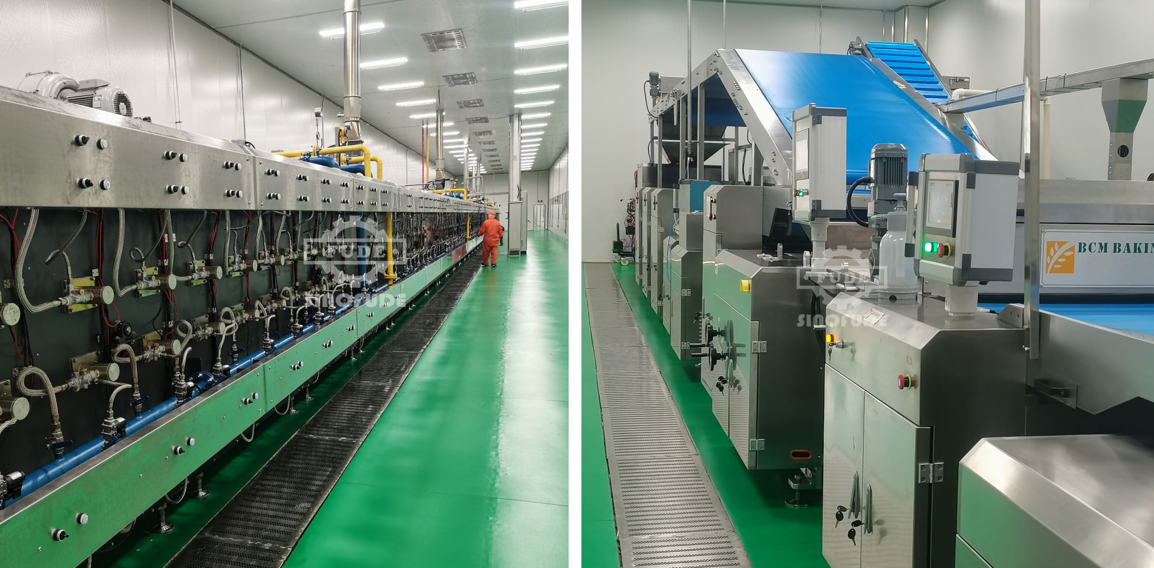 The cookie/biscuit production line capacity can reach 1-1.2 tons per hour.