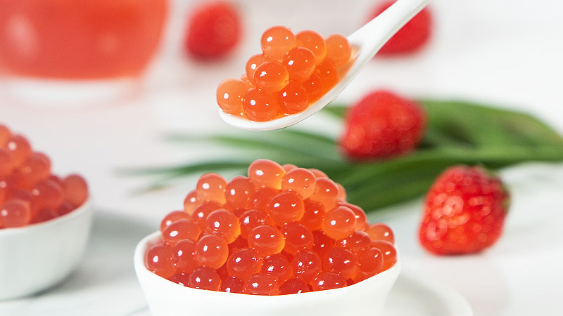 It needs to be boiled to a certain temperature according to the formula of popping boba to achieve the spheroidization reaction.