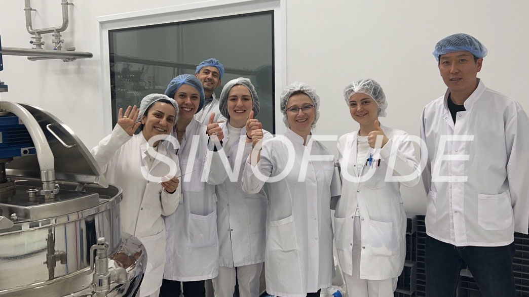 We dispatched a team of experienced engineers after the machine arrived at the customer's factory in Turkey. They have profound knowledge of machine technology and rich practical experience in gummy production, and can complete machine installation and commissioning efficiently and accurately. After arriving at the factory, our engineers surveyed and prepared the site to ensure that the machine can be installed smoothly. The customer's production line model is CLM300, and the output per hour can reach 300kg. The total length is 15m, and the widest part is 2.2m. The whole line frame, shell and internal parts are made of SUS304, and the video contact surface is made of SUS316 stainless steel, which ensures the hygienic requirements of pharmaceuticals. Since the customer only produces pectin gummy, we equip the customer's cooking system with a cooker and a storage tank. The installation of the machine is very fast. Since Sinofude's production line adopts modular installation, each part of the machine only needs to be connected with simple pipes and circuits. If you want to know specific related technologies, please continue to pay attention to us, or click the button to contact us.