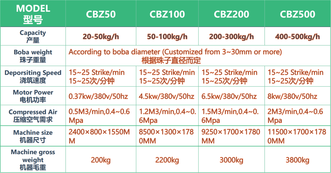 The whole production line is main made of stainless steel and it is fully complying with the food sanitation standards. The popping boba that made by this machine is in beautiful shape and filling can be any taste, bright color and weight is without variation.