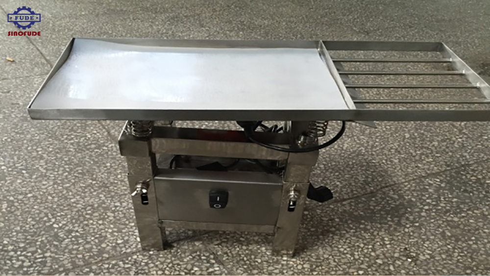 The CZDJ01 has a draining grid which is particularly useful when turning out excess chocolate from praline or hollow figure moulds. It is height –adjustable so that it can be positioned above most bain-maries and melting tanks. lease note that the draining grid is not heated .