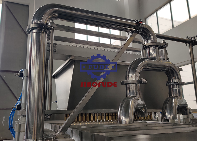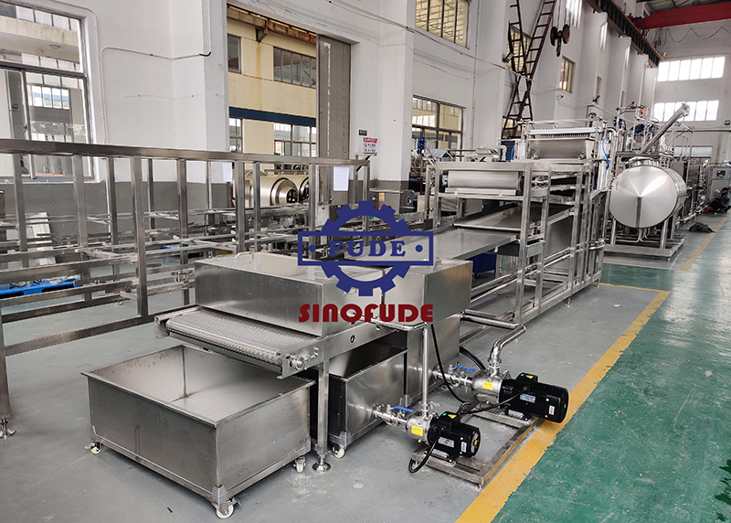 The equipment was exclusively developed and produced by Shanghai Fude Machinery and was put into production in March 2010. Adopt PLC control system, fully automatic design. The entire production line is made of stainless steel, which conforms to food hygiene standards.