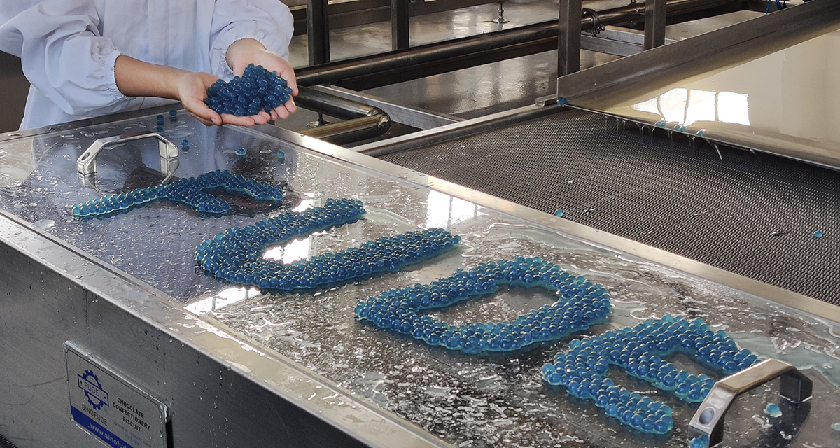 The standard production capacity range of this line is 300kg/h. The main parts of the popping boba production line are made of stainless steel SUS304, also be customized SUS316. Popping boba production line is specially designed with continuous operation and material recovery device, so as to avoid waste. By adjusting the depositing machine to adapt to different sizes of popping bobas.