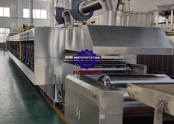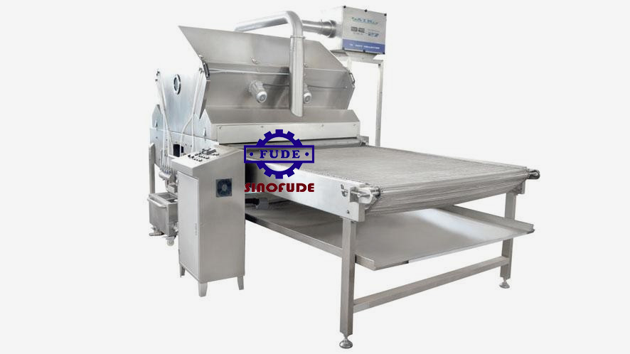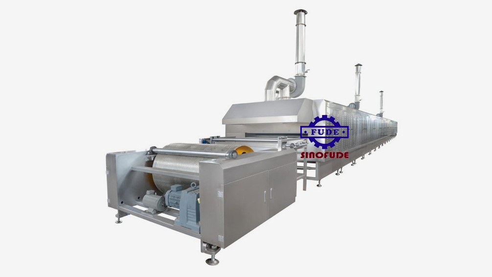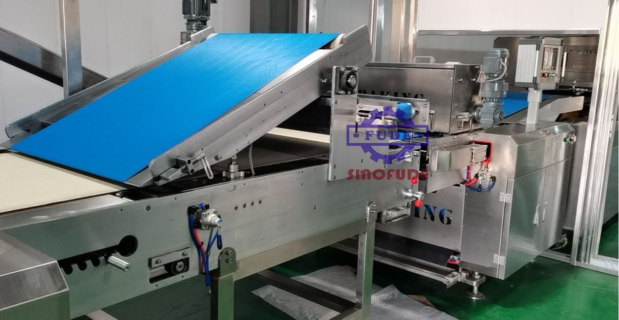 The mixed dough is conveyed to the forming machine through the dough conveying system. It is pressed by rollers, and then formed by a roller cutting mold. The stroke biscuit is green and baked to make a tough biscuit.