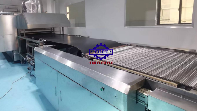 Conveying the biscuits from the oven to the oil sprayer ensures a longer shelf life and a better flavor for the biscuits. The machine works smoothly, with low noise, convenient operation and large conveying capacity.