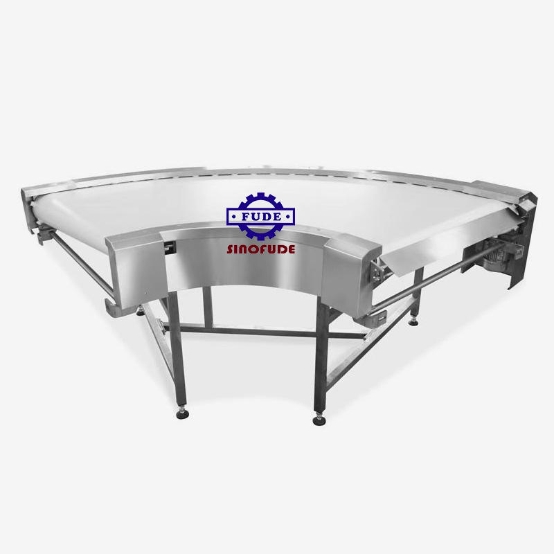 Function: The swerve conveyor is optional equipment in automatic biscuit production line. When the space (workshop) is not long enough to place the production line straight, then L swerve or U turn conveyor need to be adopted.