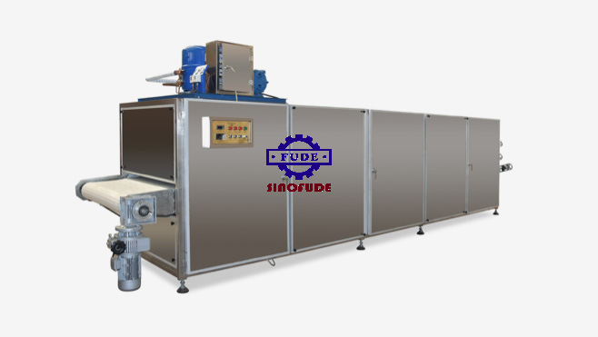 This mass cooling system is consists of stainless steel cooling belt with driven and water chilling system.