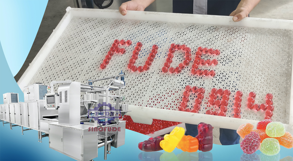 SINOFUDE Gummy bear machine adopts advanced technological process,and the sugar candy manufacturing machine can produce gummy candy of various shapes and colors by changing the gummy mold. and very easy to change the moulds