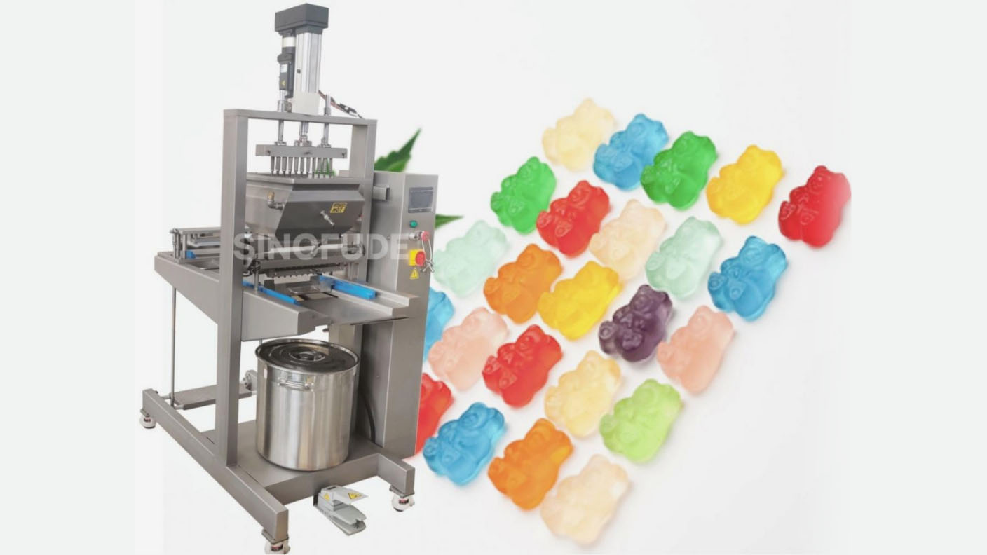É também uma pequena máquina depositadora de balas de goma usada para depositar xarope em diferentes moldes e formatos