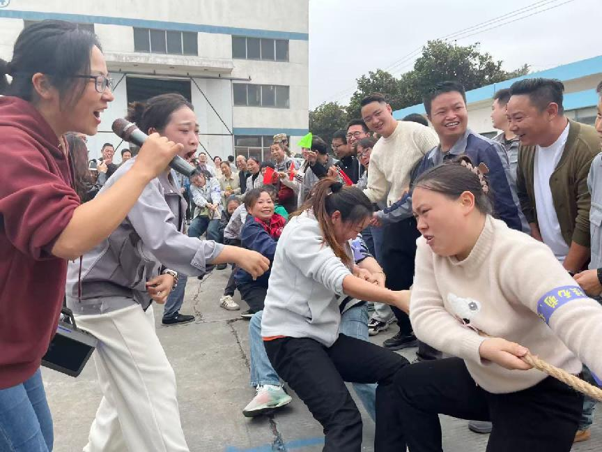 After the fire drill, the fun competitive events officially started, and the first event was the powerful and passionate tug-of-war competition. Each department quickly formed teams of 8 people, divided into men's and women's groups to compete. Before the competition, each team gathered in a circle and shouted their exclusive slogans, such as "Fuda, Fuda, fulfill the mission!" and "Unite as one, achieve great strength!" The passionate slogans resounded through the playground, fully demonstrating the high morale of each team. The cheerleading teams on the sidelines were also not to be outdone, waving cheering cards and shouting for the teams they supported, instantly heating up the on-site atmosphere.