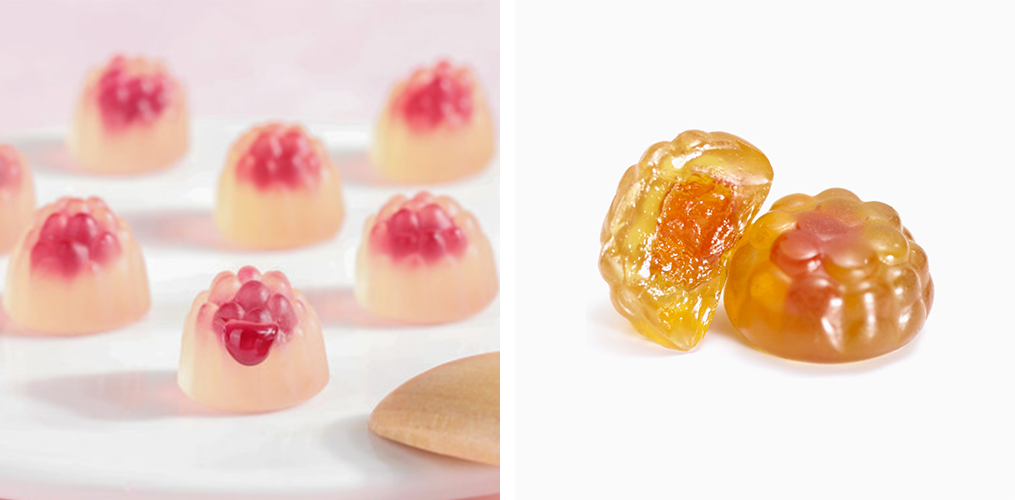 Bibẹẹkọ, ko rọrun lati ṣe ile-ikun ti nhu gummy. Ọpọlọpọ awọn gummy aarin ti o wa lori ọja ko ni iduroṣinṣin, itọwo ko dan to, ati pe ko si rilara ti nwaye. Ẹrọ gummy tuntun ti o ni idagbasoke nipasẹ SINOFUDE ati awọn amoye gummy ajeji jẹ ki gummy ni awọn abuda wọnyi: