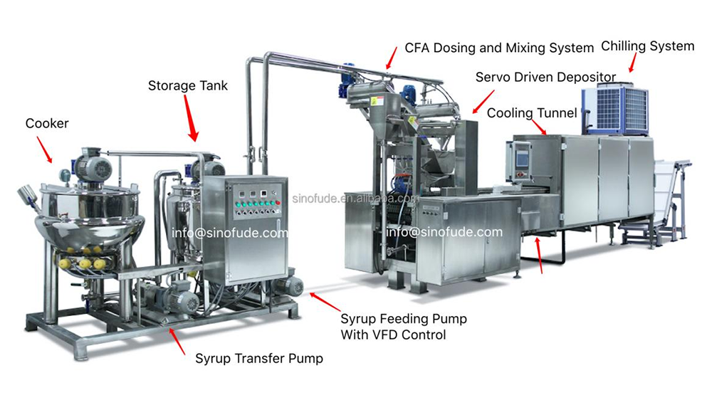 Lati ṣe ile-iṣẹ ti nhu ti nkún gummy, itọwo awọ-ara ati kikun jẹ pataki pupọ. Awọn ohun elo aise fun ṣiṣe gummy ko ni idiju pupọ, ati pe idiyele ko ga ju. Ya awọn asa ti eso gummy bi apẹẹrẹ, eso gummy Sugar nilo lati mura eso oje ati gelatin lulú. Fun oje eso, o le yan eso ti o fẹ. Lẹhin fifọ eso naa ti o ge si awọn ege, lo juicer lati fun pọ sinu oje. Gelatin lulú nilo lati fi sinu omi. Lẹhinna fi sii sinu ikoko sise suwiti gummy SINOFUDE ni ibamu si ohunelo fun alapapo ati mimu, ki ohun elo aise ti omi ṣuga oyinbo ti ṣetan.